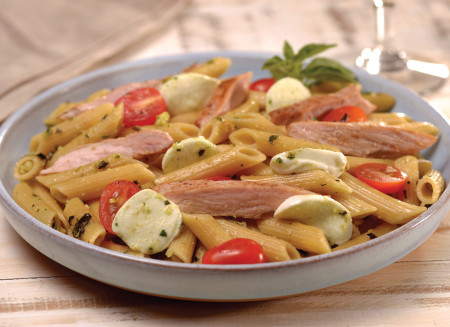 Salada de Penne Integral ao Pesto com Tiras de Lombo
