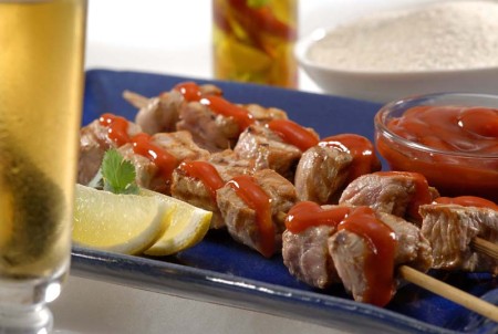 Churrasquinho Filipino de Alcatra Suíno com Crocante de Baru e Alho