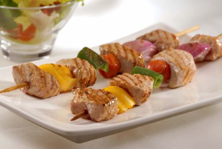 Churrasquinho de Coxão Mole Suíno com Vinagrete e Melt de Cheddar