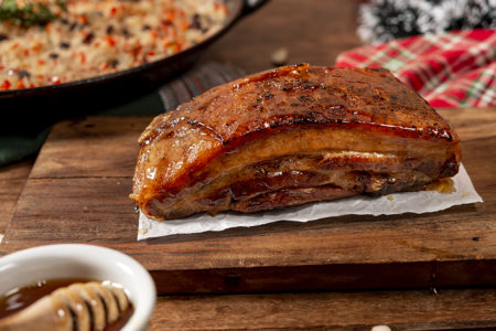 Barriga suína com mel e especiarias